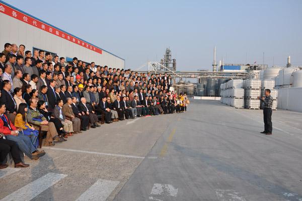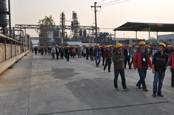 The 33rd Annual Conference of Water Treatment Institute 2013 was held in Fengming Village, Zaozhuang city, Shandong province. On the first day of the conference, more than 300 water treatment experts and colleagues nationwide visited Shandong Taihe Water Treatment Co., Ltd and had pictures taken together at stereo storehouse door. All the representatives followed guide and introduction by Chairman Cheng of Taihe, visited the factory. Through years of rapid development, Taihe has ten-thousand-ton level equipment sets: 1 set of annual production of 20 thousand tons 60% HEDP and joint production of 15 thousand tons Acetyl Chloride; 1 set of annual production of 25 thousand tons ATMP; 1 set of annual production of 10 thousand tons polymers; 2 sets of annual production of Benzalkonium Chloride.